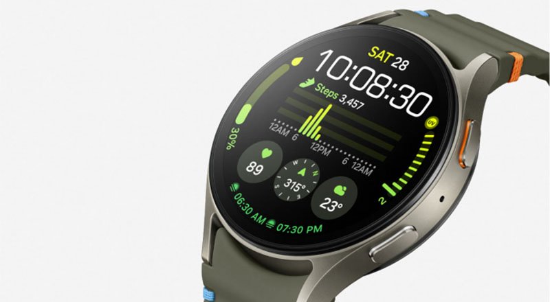 El Galaxy Watch7 está equipado con un procesador de 3 nm, el más potente de la línea y ofrece mayor rapidez y 30% eficiencia energética mejorada del procesador de aplicaciones. A su vez, es el primer reloj inteligente con GPS de doble frecuencia, que rastrea la ubicación con mayor precisión, incluso en entornos densos.